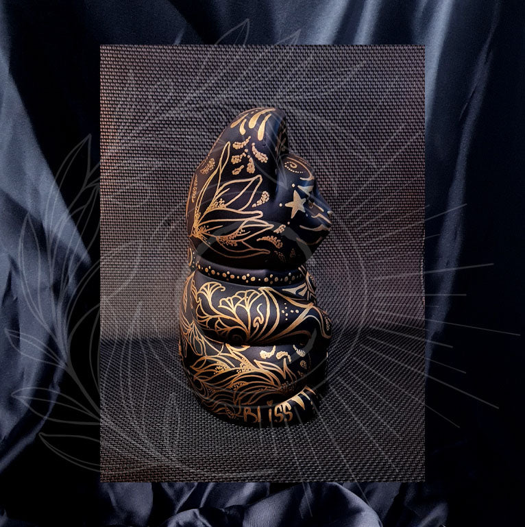 Apportez mysticisme et protection à votre intérieur avec ce Maneki Neko unique noir et or, inspiré du chat égyptien personnalisé par Mamma Shultz®.